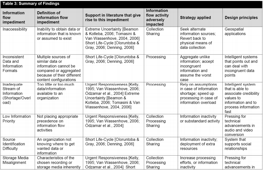 Day, J. M., Junglas, I., & Silva, L. (2009). Information flow impediments in disaster relief supply chains. Journal of the Association for Information Systems, 10(8), 1.